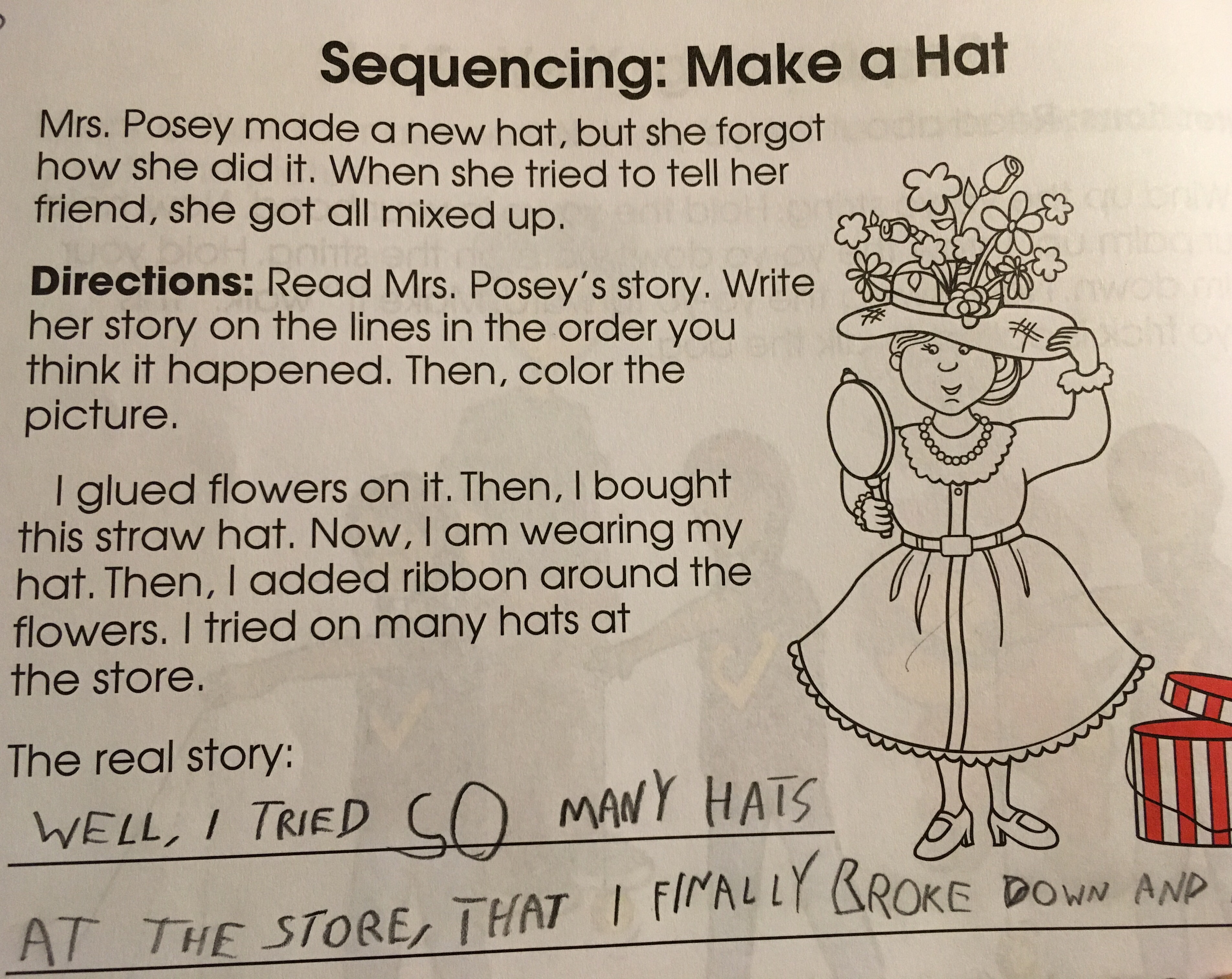 One of the reading comprehension assignments this week is to read a story, then put the sentences in the correct order.